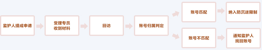 在监护人发现被监护人有沉溺福州云锋娱乐平台的情况下,监护人可向游家公司申请发起未成年人家长监护机制。 监护人需亲自通过邮寄方式 向我司提供有效材料,向游家公司提出未成年人账户监控的申请。在收到邮件后,我司即开始启动监护机制审核流程,首先进入疑似账号身份确认期。